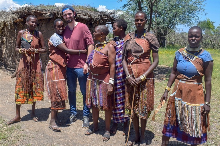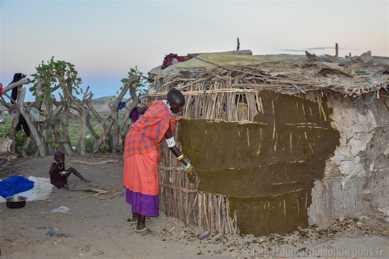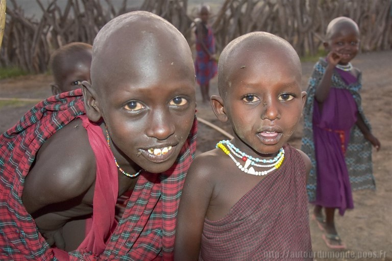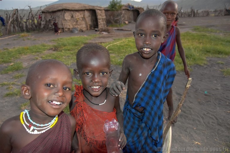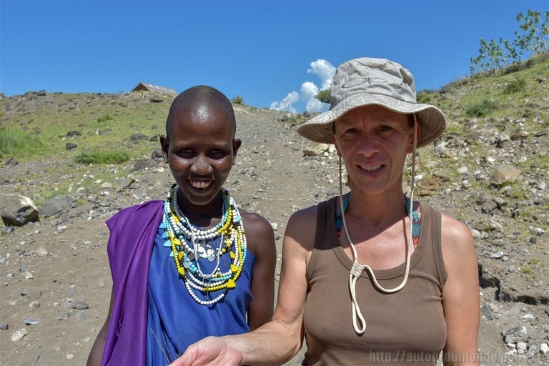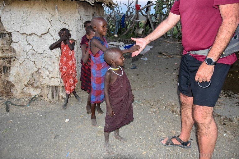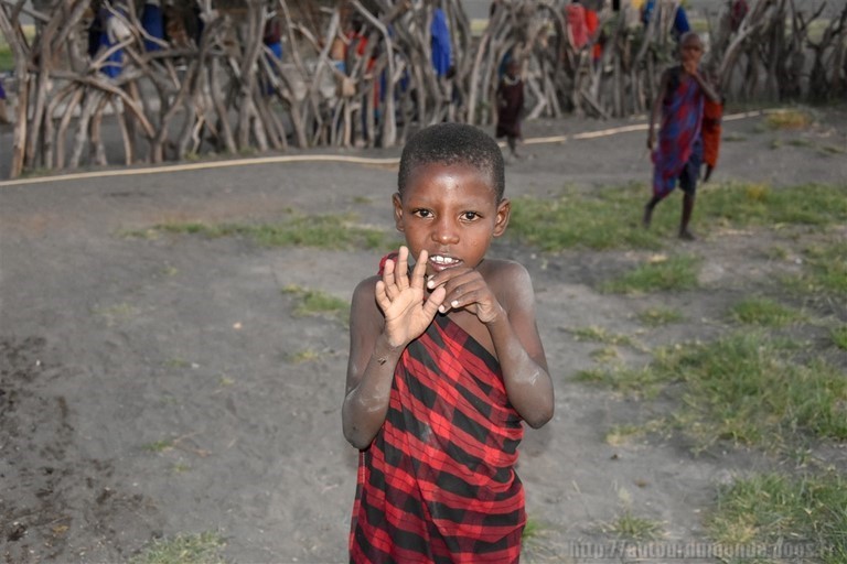 Nous n’avons pas échappé à la visite d’un village. Nous avions souligné à notre guide masaï, John, qui nous a accompagné toute l’après-midi, que nous n’étions pas favorables à cette visite. John ? Eh bien oui, il nous a expliqué qu’il ne croyait pas en cette religion masaï qui, selon lui est ridicule, et qu’il avait préféré le christianisme… Nous trouvons les masaïs qui nous abordent extrêmement portés sur l’argent et agressifs à ce niveau-là, beaucoup plus que les autres tribus que nous avons rencontrées. Il nous certifie que dans ce village, ce sera différent : tout le monde dit ok. Effectivement tout s’est bien passé, peut-être leur a-t-il parlé avant ...