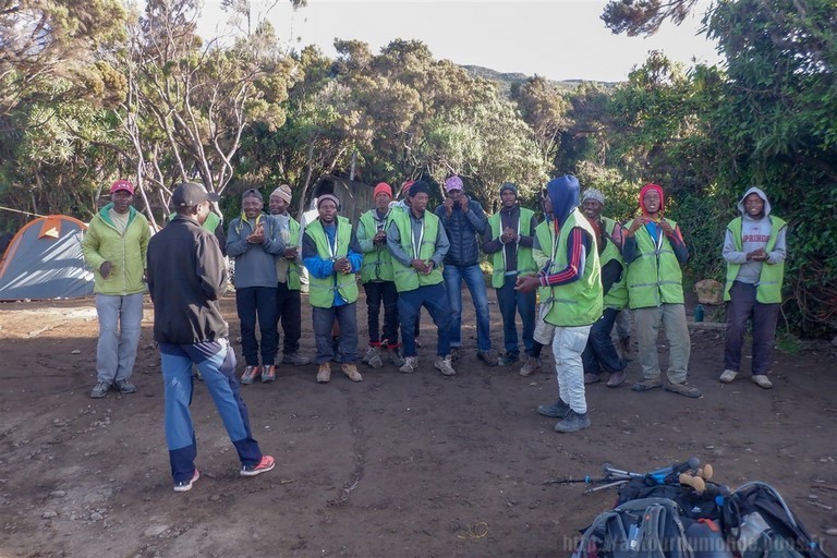 Le départ est pour demain le 16. Nous rencontrons d’abord les guides au lodge : ils font une inspection de notre matériel de montagne et s’assure qu’on ait tout le nécessaire et rien de trop car nos sacs seront portés par les porteurs et ils ne doivent pas dépasser 15kgs.