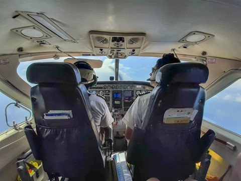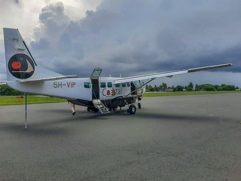 Notre première étape sera quatre jours sur l’Ile de Mafia dans l’archipel de Zanzibar, beaucoup moins touristique que Zanzibar. C’est à 4 que nous prenons ce petit coucou depuis Dar Es Salaam, Pascale et Pascal, Marion et Julie. Au programme, visite tranquille, repos.
