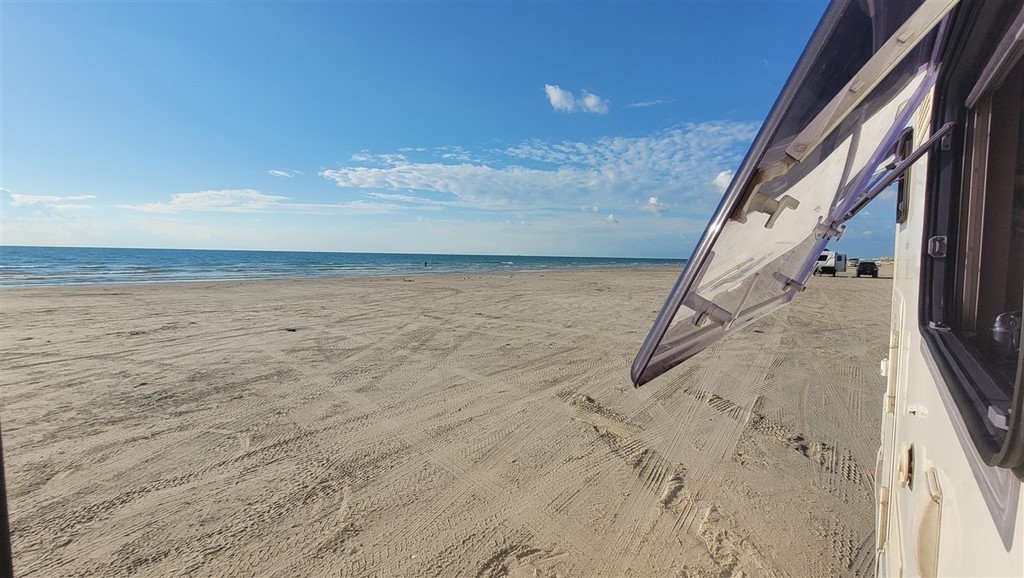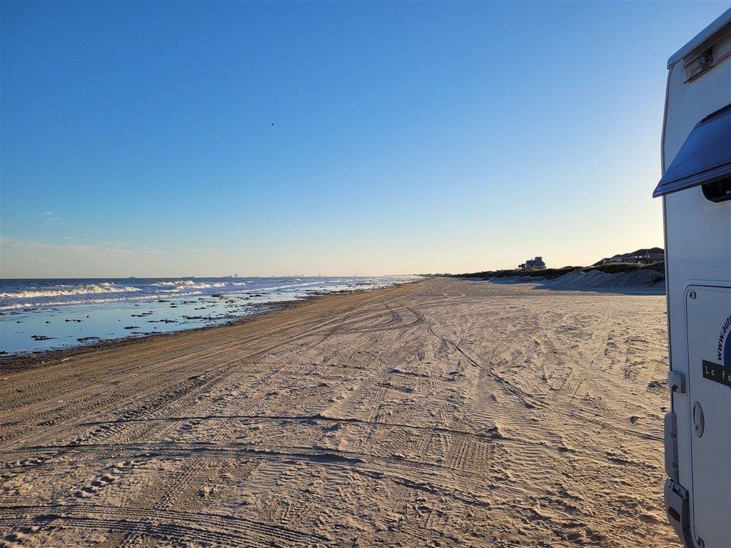 Nous prenons du repos ou des vacances sur l’immense plage de Port Aransas. Elle fait plusieurs dizaines de kilomètres et on peut poser notre camping-car où on veut face à la mer moyennant l’achat d’un permis de 12$, valable un an. Nous en profitons surtout pour finaliser notre future entrée au Mexique et gérer l’assurance.