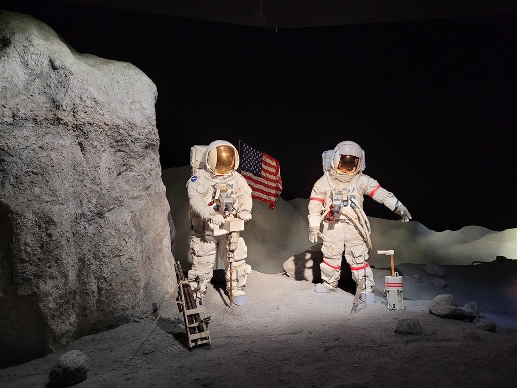 Mais la route nous attend pour être à temps au Pow Wow à San Marcos à côté de San Antonio. Elle passe par Houston et le centre de la NASA, le Johnson Space Center. Il y a tout une partie musée mais aussi deux trams qui permettent de visiter le centre spatial et de découvrir les bâtiments où les astronautes s’entrainent, le centre médical, le centre de contrôle qui était effectif lors de l’arrivée du premier homme sur la lune en 1969… On a donc touché Mars, touché la Lune et touché une météorite, disons un morceau de chaque. Pascal est un peu déçu du centre et Pascale, au bout de cinq heures, décroche avec l’anglais.