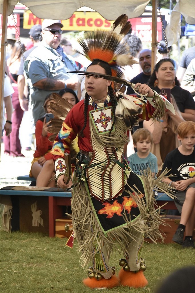 Ça y est, nous sommes à temps à San Marco pour le Pow Wow. C’est une célébration de danses, de culture, de musique, des indigènes natifs. Ici elle regroupe les indigènes du Texas et du Mexique du Nord et est organisée par l’institut des cultures indigènes. Pascale guettait les dates des Pow Wow depuis que nous sommes au Canada. Nous avions loupé celui près de Québec car il n’y avait plus de place.