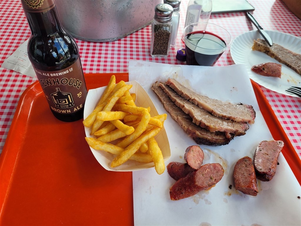 Il ne faut pas quitter le Texas sans parait-il goûter à un pur barbecue texan. La viande n’est pas grillée comme chez nous mais longuement fumée. Le restaurant est typiquement local, le Old 300 BBQ à Blanco. La nappe est en petits carreaux rouges, les familles viennent manger. On repère même un homme avec un pistolet à la ceinture. Les enceintes diffusent de la musique country. On se régale.