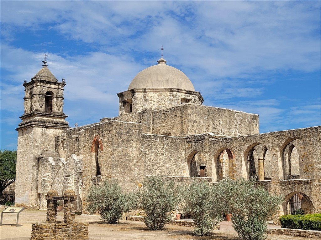 Les missions ont été établies par des missionnaires franciscains au début du 18ème siècle dans le but de convertir les amérindiens au catholicisme. Véritables lieux de vies, les missions ont permis aux Indiens de survivre face aux maladies, aux attaques, et de tirer parti des enseignements que les Espagnols leur ont légués, tels que l’art du tissage, la charpenterie, l’agriculture…. La première mission est la mission Alamo ou the Alamo. La mission Alamo a été fortifiée pour devenir un fort pour faire face à des attaques de tribus indiennes telles que les apaches et les comanches. Nous en avons tous entendu parler sous le nom de Fort Alamo. Le Texas était à l’origine un état du Mexique. En 1835, le Mexique abandonne le fédéralisme pour un Etat centralisateur et reprend la main sur cette province en limitant les droits des colons tout en les soumettant à de nouvelles taxes. Le fort tenu par les texans se militarise et trois hommes deviennent des pièces maitresses, Crockett, Bowie et Travis. Mais en février 1836, après un siège de treize jours, les texans font face à une attaque mexicaine, se battant à dix contre un mais finalement ils sont tous tués y compris David Crockett. Le siège et la défaite du fort Alamo symbolisent le courage et l'esprit de sacrifice des Américains pour leur nation.